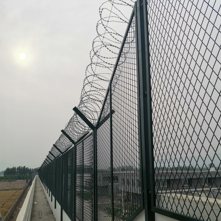 監(jiān)獄巡邏道鋼網(wǎng)墻V型頂端安裝刀片剌網(wǎng), 直徑采用50cm-60cm刀片剌網(wǎng)主要是由熱鍍鋅鋼板或不銹鋼薄板沖壓而成的,它擁有尖銳的刀片,張力鍍鋅鋼絲或者不銹鋼絲做芯線組合而成的產(chǎn)品。使得犯人無力翻越監(jiān)獄巡邏道鋼網(wǎng)墻。我們艾瑞金屬擁有豐富的產(chǎn)品生產(chǎn)及設(shè)計經(jīng)驗,為許多的監(jiān)獄和看守所生產(chǎn)過產(chǎn)品,我們從2012年開始就做了全國很多家監(jiān)獄的成功案例和機(jī)場的建設(shè)參與,我們的產(chǎn)品贏得了廣大新老客戶的一致好評,所以在監(jiān)獄鋼網(wǎng)墻生產(chǎn)和安裝方面有豐富的經(jīng)驗和案例,有這方面的咨詢,歡迎來廠、來電咨詢產(chǎn)品。