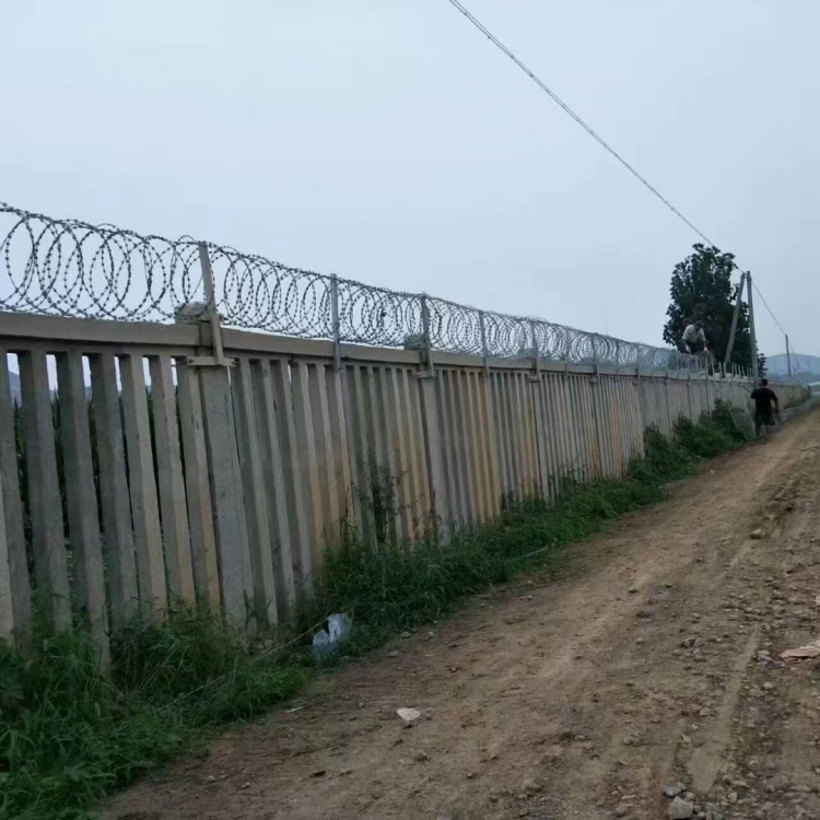 通常來說高鐵兩側(cè)應(yīng)用刺絲滾籠的話會用到水泥制圍欄而刀片刺繩則是安裝到了圍欄上面防止翻越的。在設(shè)計(jì)上面不同的地形設(shè)計(jì)成了不一樣的樣式,