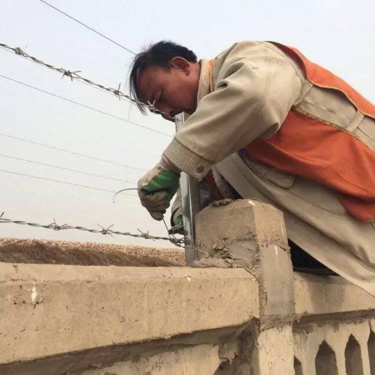 針對刺絲滾籠和雙股刺繩對于上鋅量是明顯的要求了,此外包括一些安裝長度和直徑等等方面要求也是比較多的。張開后形成蛇腹網(wǎng)狀,閉合后刀片刺繩圈徑為50cm,張開后每交叉圈安裝間距20cm,直徑不小于45cm,刀刺寬度22mm,兩刃垂直間距15cm,刀刺縱向間距34mm,芯絲直徑為2.5mm,刀片采用厚度0.5mm的Q195鋼板沖切制作,芯絲由HPB300直徑6.5m高線鋼絲冷拔加工。這樣名列出嚴(yán)格的技術(shù)要求也是為了保障安全和使用壽命。這里面我們要指出的一點(diǎn)就是小型的支架是為加密而設(shè)計(jì)的,而最大的刺繩支架是在階梯交接的地方進(jìn)行安裝和固定的。安裝工序是肯定是先固定支架了,一般都有專門的u型螺栓抱咂在水泥制的圍欄上面只需要固定.