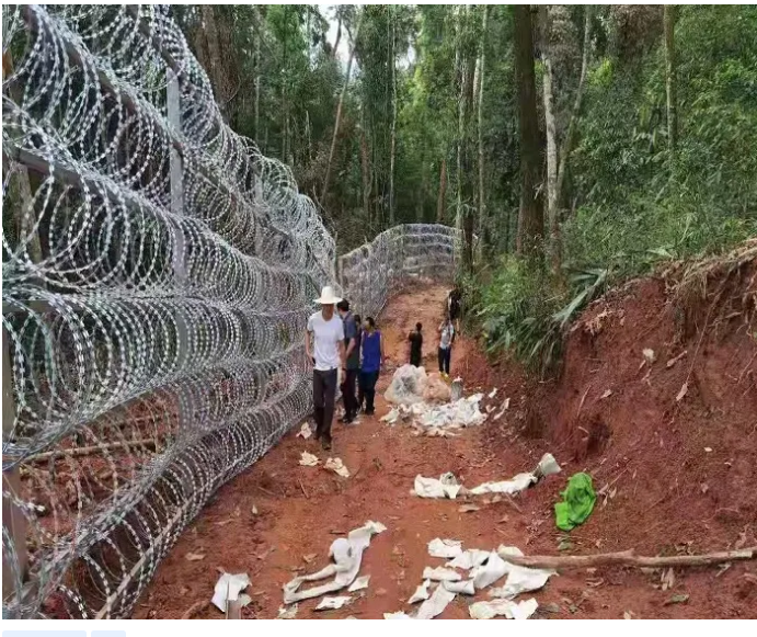 云南邊境防疫鋼鐵長城采用蛇腹型刀片鐵絲網(wǎng),刀片剌網(wǎng)又名刮刀型刺絲,是一種發(fā)展起來的防護(hù)、隔離能力較強(qiáng)的新型防護(hù)網(wǎng)產(chǎn)品。鋒利的刀型刺由雙線扣裝后成蛇腹?fàn)?既美觀又讓人不寒而栗。起到了很好的阻嚇作用。同時該產(chǎn)品具有美觀、防阻效果好、施工便利等優(yōu)點。