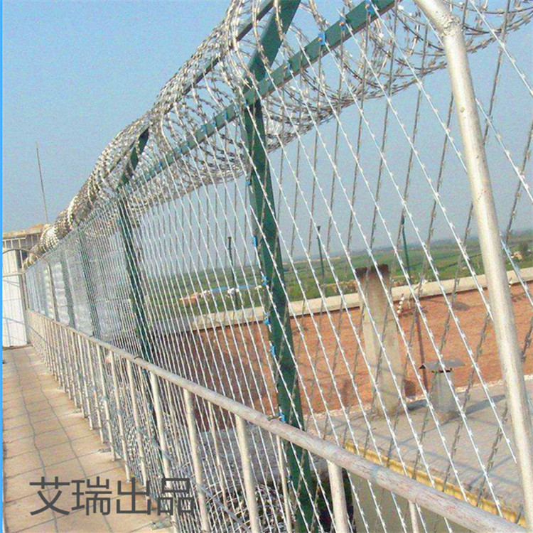 隔離網是非常重要的監所安全防護設施,隔離網由焊接鋼網加蛇腹形刀刺網組合而成。產品具有結構新穎、堅固緊密、網面平整、網孔均勻、刀鋒銳利、防攀爬、抗腐蝕性強等特點.建設于監所的內外墻地面及高墻之上,網墻內側或頂部加裝蛇腹形刀剌網,形成一道高不可攀、難以逾越的隔離障礙。配合高壓打擊電網、各種監控報警設備確??词厮踩>哂袌怨棠陀?、美觀大方、刀鋒封利、防攀爬、抗強風、抗沖擊、抗剪切、抗腐蝕等優異特點。主要用于監所圍欄、看守所鋼網墻、邊界鋼網墻、邊防線防護網等高安全場所。
