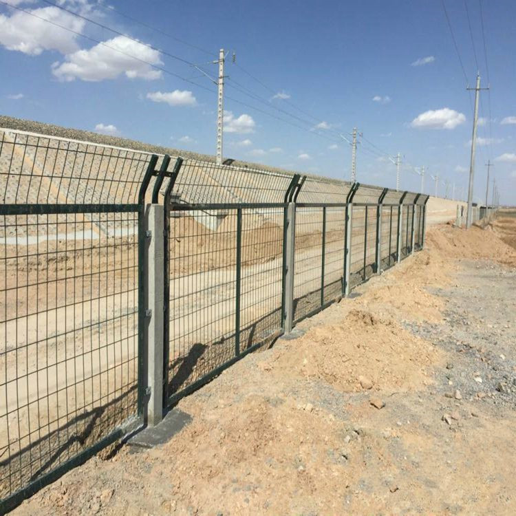 鐵路防護柵欄是用于鐵路兩側的隔離防護設施起隔離和防護的作用的護欄網產品。護柵欄產品堅固耐用,價格適中,適合大面積采用,安裝時做到:嚴、齊、順、美,橋下封閉不得留有空隙,應對柵欄兩側地面進行平整壓實,保證柵欄對于兩側地面均達到防護高度。防護柵欄應與線路防護柵欄進行緊密順接,防止先接觸出現較大間隙。根據不同連接點的厚度,選用圖集中不同尺寸的防盜螺栓。生產過程工序復雜,多重工藝,生產過程中需要注意焊接的牢固。上鋅量的達標,浸塑層的厚度及表層的平整光滑等,我公司在產品的質量方面采用IS 09001質量控制,實行內部三級監管機制,對產品質量層層把關,做到了不合格品的“不生產不流通,不庫存‘’的原則。