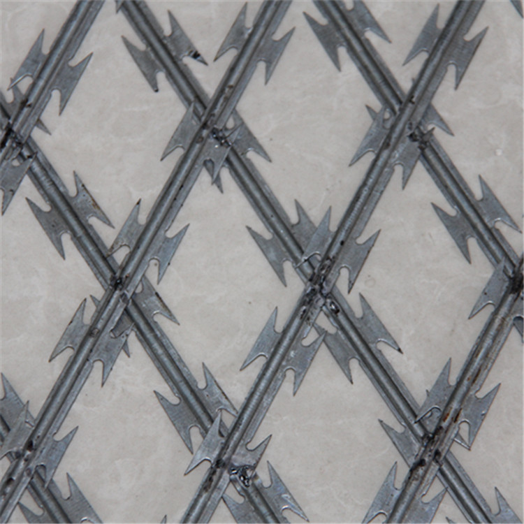 刀片刺繩監(jiān)獄防護(hù)網(wǎng)刀片刺網(wǎng)材料有低碳鋼絲、冷扎熱鍍鋅金屬薄板,不銹鋼板材,不銹鋼線等:加工工藝:由熱鍍鋅鋼板或不銹鋼板金屬薄板沖壓模具出尖銳的刀塊狀,高支撐力鍍鋅鐵絲也許不銹鋼線做銅芯電纜組成的阻絕元器件。因?yàn)榈镀汤K造型相互不容易觸碰,因此能抵達(dá)很好的安全防護(hù)隔絕功效,還具備好看、經(jīng)濟(jì)發(fā)展有效、防阻功效好、工程施工方便、長壽命等出色特點(diǎn),包裝采用內(nèi)防潮紙外蛇皮口袋,原材料采用Q235碳素鋼,網(wǎng)眼:50*100毫米、70*150mm等,絲距:3.8-6mm,管經(jīng):48mm*48mm、60mm*60mm*3mm等,非常規(guī)范型號規(guī)格可依據(jù)用戶需求訂制。