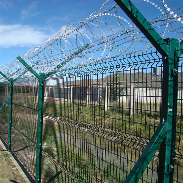 監(jiān)獄鋼網(wǎng)墻又稱作“Y型安全防御護(hù)網(wǎng)”,是由V型支架立柱,加強(qiáng)型焊接片網(wǎng)安全防盜連接件和熱鍍鋅刀片剌籠組成強(qiáng)度和安全防御性級(jí)別很高。現(xiàn)被廣泛應(yīng)用在監(jiān)獄,軍事基地等高安全場(chǎng)所。在監(jiān)獄護(hù)欄頂部加裝刀片剌絲、刀片剌繩后又很好的增強(qiáng)了安全防護(hù)性能。監(jiān)獄鋼網(wǎng)墻運(yùn)用在監(jiān)獄上,具有哪些優(yōu)勢(shì)?艾瑞金屬絲網(wǎng)為大家解析。