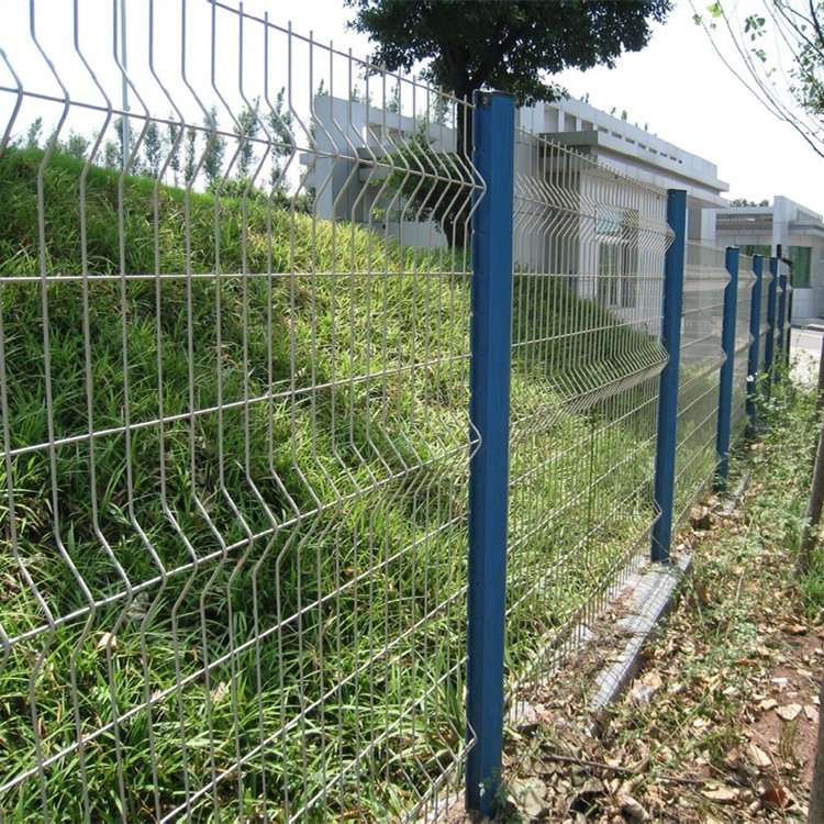 其次,桃型柱護欄網的安裝方式很不普通,網片和立柱不是簡單的通過連接掛件連接,而是在網片做好的時候,通過機器把折彎處的網絲減去,形成一個內凹的形狀,然后在安裝的同時,把內凹的部分關在桃型柱立柱的卡槽內,確保網片和立柱的穩固。