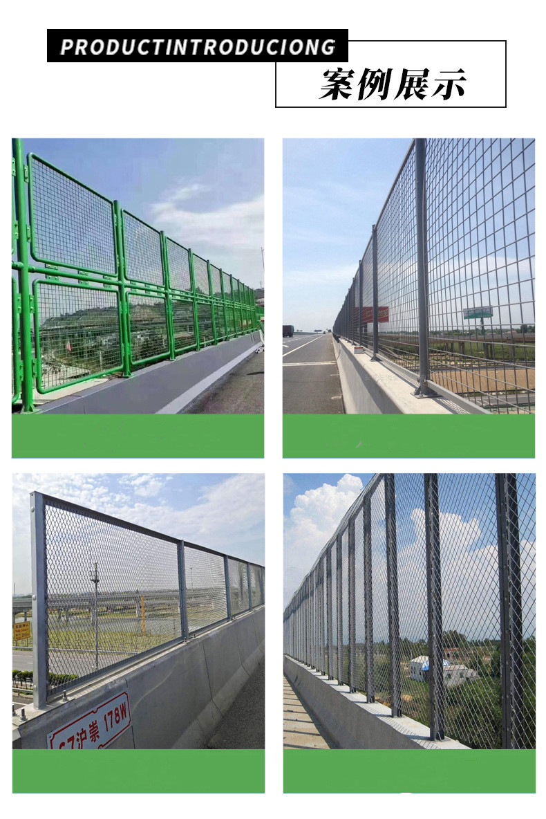 耐用的特點。網片經高效浸塑特別適合于橋梁防拋網,十年防銹拆裝方便重復使用性好,可根據需要對圍網重新布局環保產品,最終可回收利用。用途:用于公路、鐵路、飛機場、工業園區、農業開發區、示范工程隔離防護網使用。慕源金屬絲網做出的橋梁護欄網以新穎的款式,精致的手I ,優質的性能及售后服務得到業內人士的一致好評,更有部分產品熱銷于福建省內外地區,在交通安全設施行業領域一直擁有很好的口碑。歡迎需求人士來我們公司考察與指導!