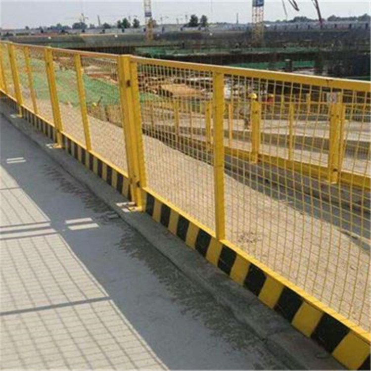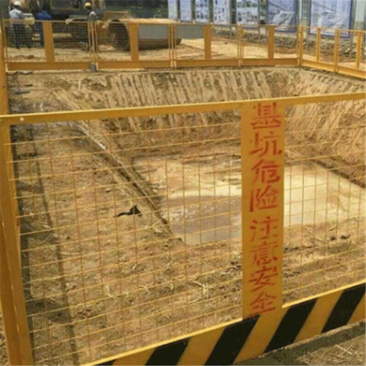 第一種是用2*2cm和2*3cm方管焊接的框架,底端必須用20厘米高的鐵板焊接,上側是焊接在框架頂部的金屬絲網或鋼絲網。這是框架護欄,但下端從底部到頂部20厘米,并且鐵板已焊接,鐵板的厚度通常為0.6-1.2mm。在基坑護欄網的外表面一般都是采用噴涂的方式,顏色大都是黃色、藍色、白色、紅色等等。
